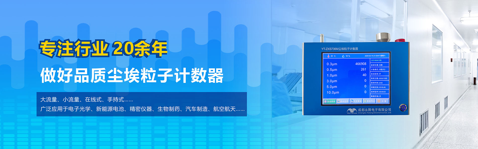成都永騰電子有限公司位于成都市國(guó)家經(jīng)濟(jì)技術(shù)開(kāi)發(fā)區(qū),是一家專業(yè)從事環(huán)境空氣監(jiān)測(cè)儀器研發(fā)、生產(chǎn)、銷售于一體的高科技企業(yè)。產(chǎn)品涵蓋空氣檢測(cè)儀器、潔凈間在線塵埃粒子計(jì)數(shù)器監(jiān)測(cè)系統(tǒng)、大氣顆粒物監(jiān)測(cè)微站系統(tǒng)、電化學(xué)分析儀器、實(shí)驗(yàn)室設(shè)備等產(chǎn)品。